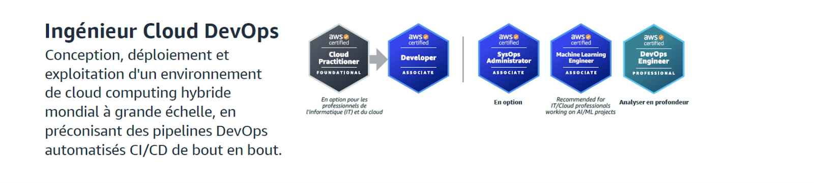 💡 Dans le domaine de la sécurité, il existe le métier de DevSecOps pour lequel AWS propose un parcours « Ingénieur DevSecOps ».