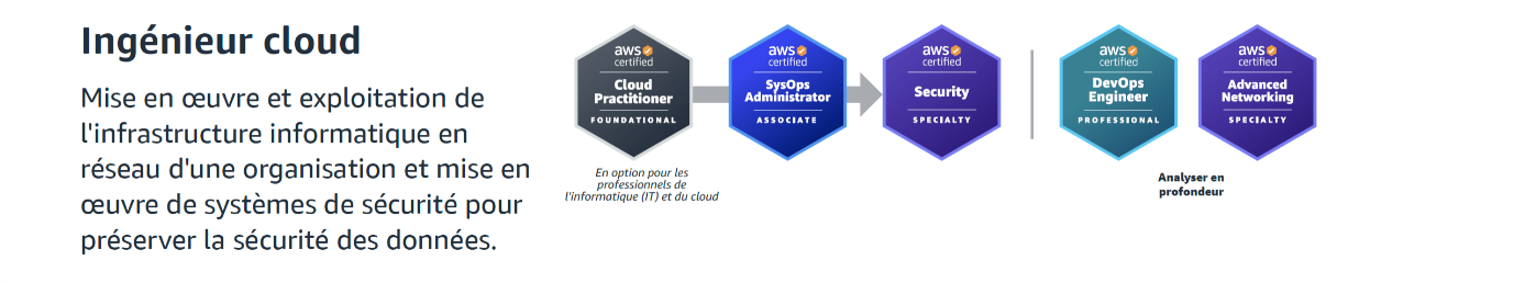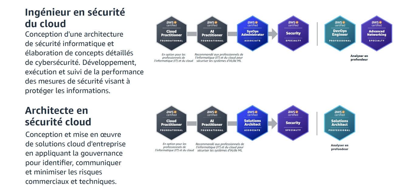 - Parcours « Ingénieur en sécurité du cloud » : AWS Certified SysOps Administrator Associate.