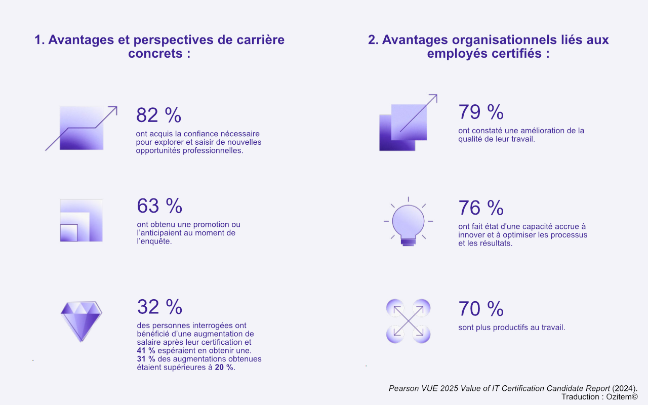 Le rapport Value of IT Certification (2025) de Pearson VUE indique que :