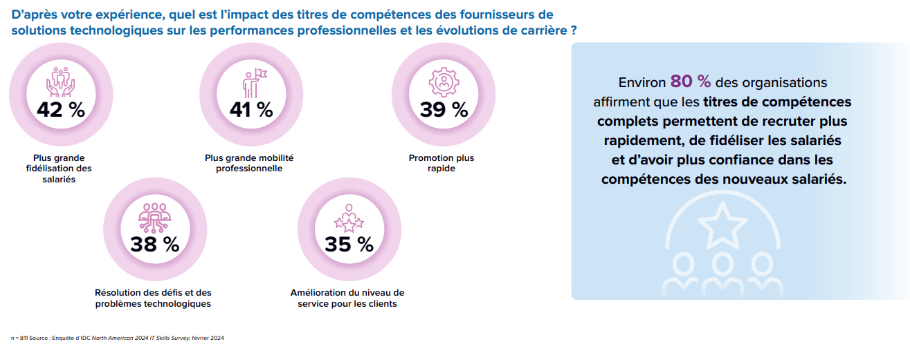 De son côté, le Leveraging Full and Micro-Credentials for Optimal Skilling Solutions (2024) d’IDC révèle que 70% des entreprises considèrent les certifications reconnues comme essentielles ou très importantes pour acquérir des compétences.