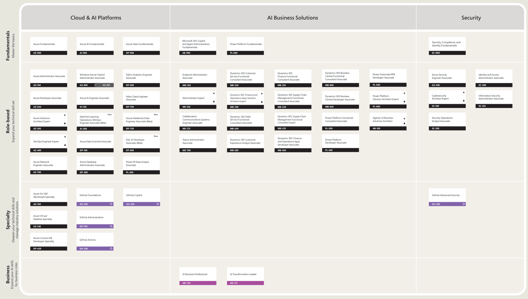 En 2026, un nouveau type de certification professionnelle a vu le jour « Business » visant des compétences nécessaires pour des métiers non technique comme AI Business Professional et AI Transformation Leader.